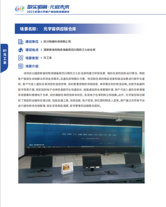 《成都元宇宙典型應用場景案例集》展示了70多個典型應用場景案例,體現了元宇宙在各個領域的高水平實踐示范。物通科技在元工業方面的兩個項目——"白酒智能釀造工業元宇宙場景"和"元宇宙供應鏈倉庫",憑借其技術創新和降本增效的貢獻得到了政府有關部門的認可,并成功被納入案例集中。