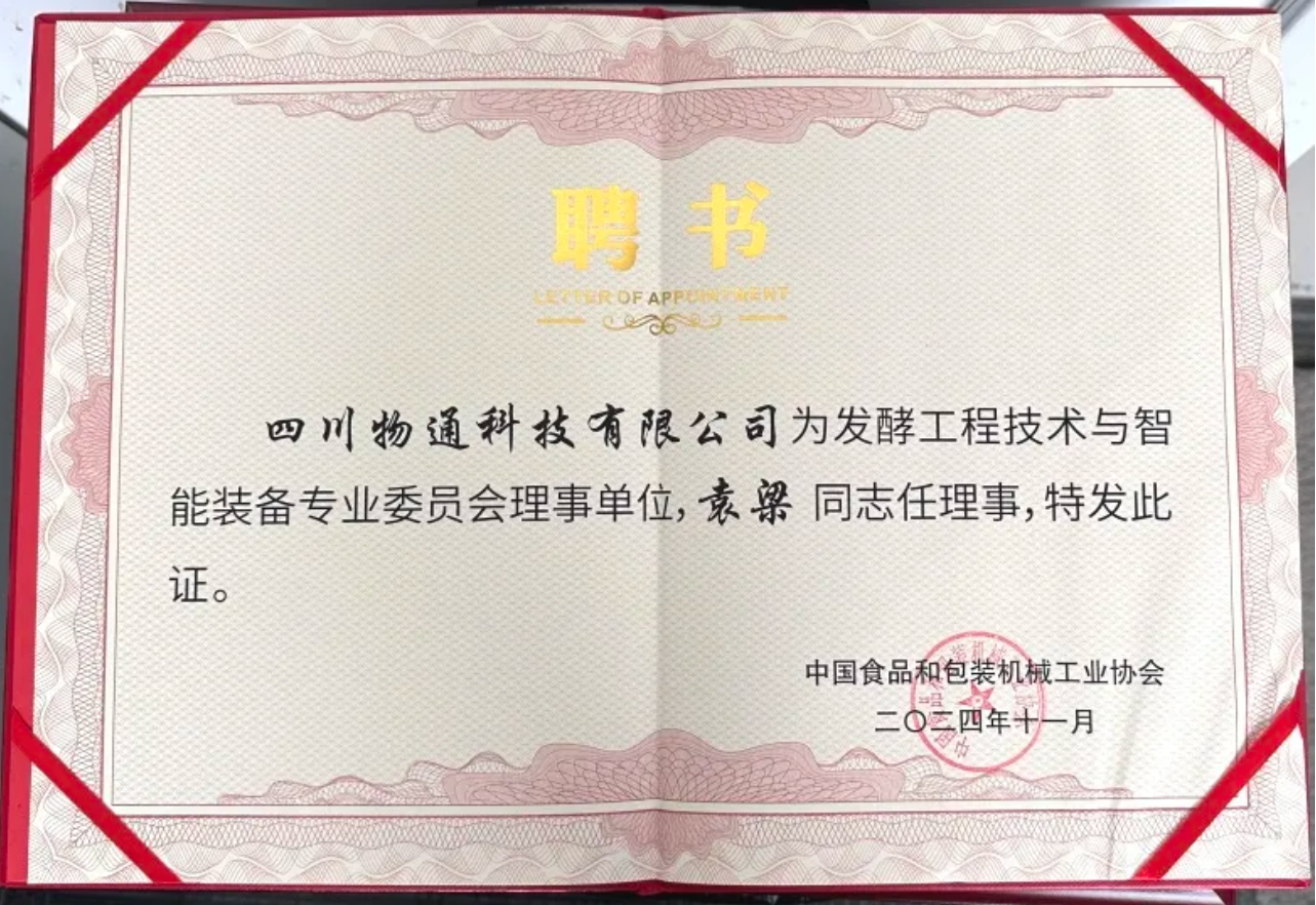 在大會期間舉行的“發酵工程技術與智能裝備專業委員會成立大會暨發酵工程技術與智能裝備論壇”上,物通科技被正式任命為該專委會的理事單位,公司總經理袁梁先生當選為專委會理事。這標志著公司在行業內的影響力和專業性得到了進一步認可。未來我們將更深入地參與行業標準制定和技術交流,推動整個行業的技術進步和發展。