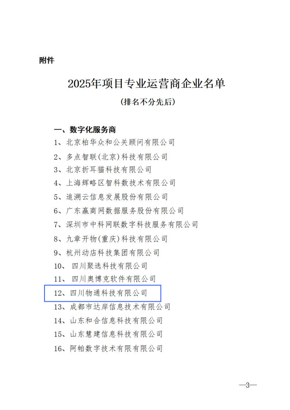 為貫徹落實(shí)商務(wù)部等七部門(mén)聯(lián)合印發(fā)的《零售業(yè)創(chuàng)新提升工程實(shí)施方案》精神,推動(dòng)零售業(yè)高質(zhì)量發(fā)展、提升全國(guó)商業(yè)運(yùn)營(yíng)服務(wù)能力,中國(guó)商業(yè)聯(lián)合會(huì)于2025年組織開(kāi)展了項(xiàng)目專業(yè)運(yùn)營(yíng)商企業(yè)遴選工作。經(jīng)企業(yè)自主申報(bào)、材料初審、專家審核及網(wǎng)上公示等程序,四川物通科技集團(tuán)有限公司成功入選“數(shù)字化服務(wù)商”類(lèi)企業(yè),成為全國(guó)50家上榜單位之一。