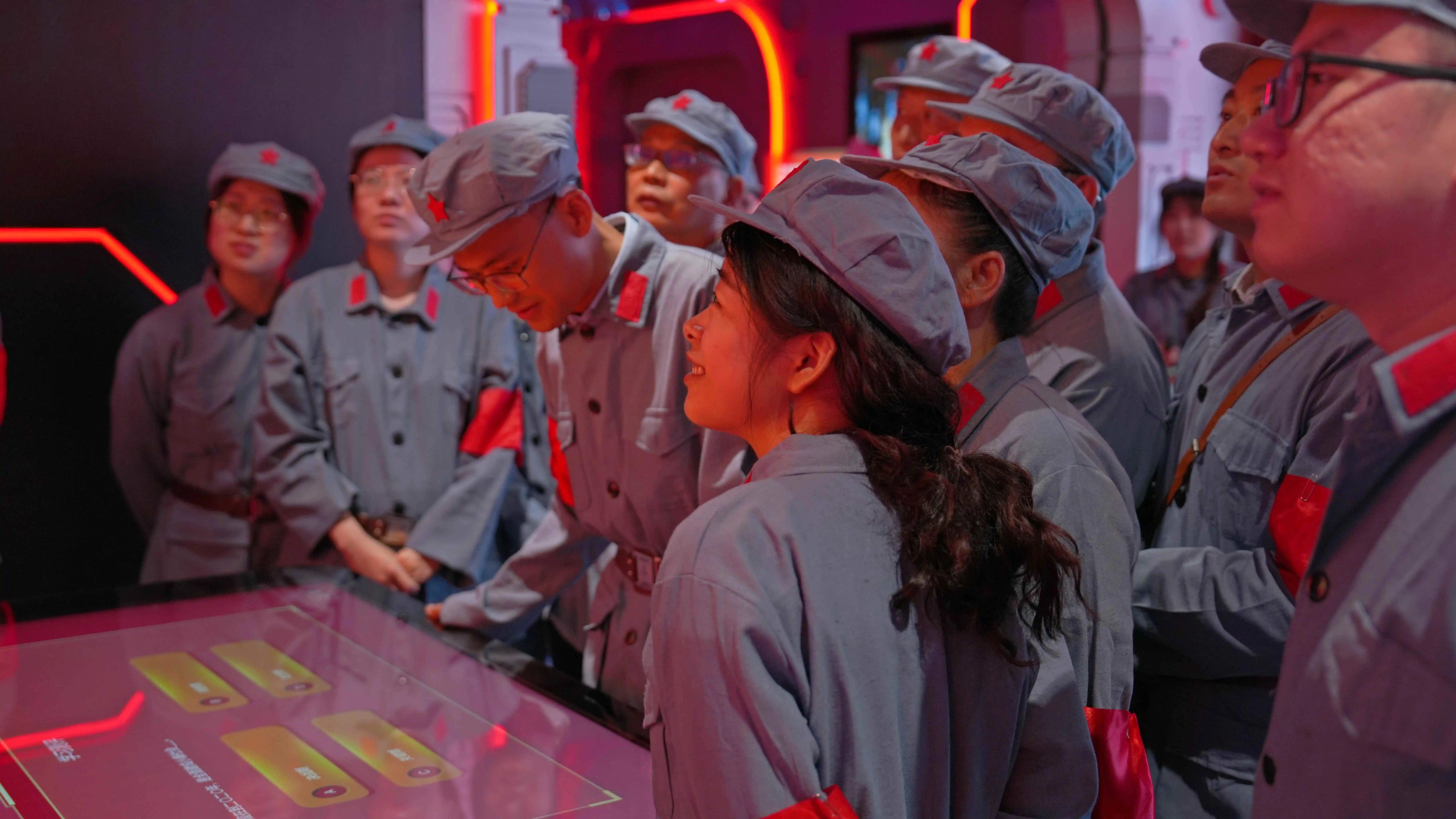 活動伊始,黨員們換上整齊的紅軍軍裝,仿佛穿越回那個烽火年代。在虛擬制作體驗區的LED環幕前,《長征前的秘密協議》徐徐上演,波瀾壯闊的畫面與震撼的音效將大家帶入長征出發前的緊要關頭,信仰的力量在光影交織中鮮明躍動。